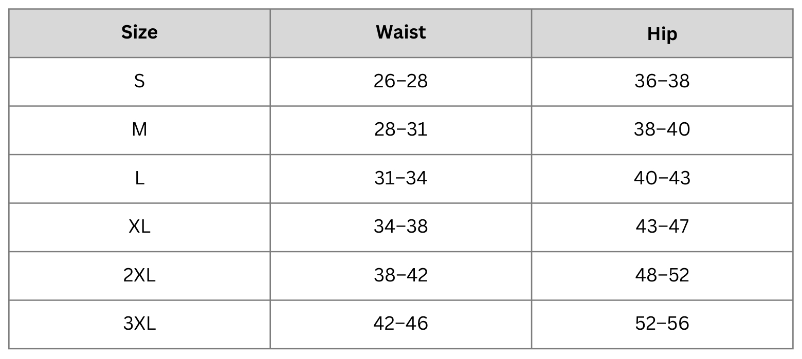 Size Chart (inches):