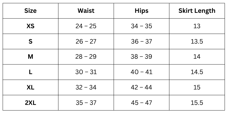 Size Chart (inches):