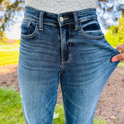 Tummy Control: These jeans will sculpt and streamline your figure, all while maintaining their stretch and comfort. They're perfect for tackling mid-day bloating, smoothing out a c-section pouch, or just generally slimming your appearance.
