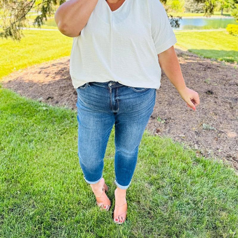 Comfortable Fit: These jeans feature our most popular rise: the ideal mid-rise! This design is incredibly flattering for the figure and offers comfort around the stomach area.