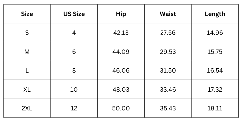 Size Chart (in inches):
