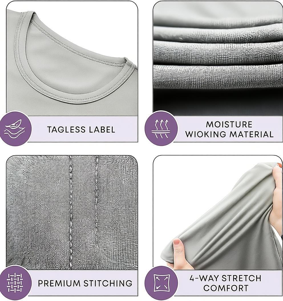 Moisture wicking yarns help handle sweat. Airflow within the knit reduces clammy moments. The fabric dries quickly after washing. These traits support frequent rotation across the week.