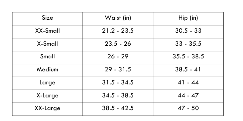 Size Chart (in inches):