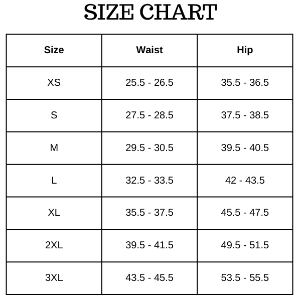 Size Chart (inches):