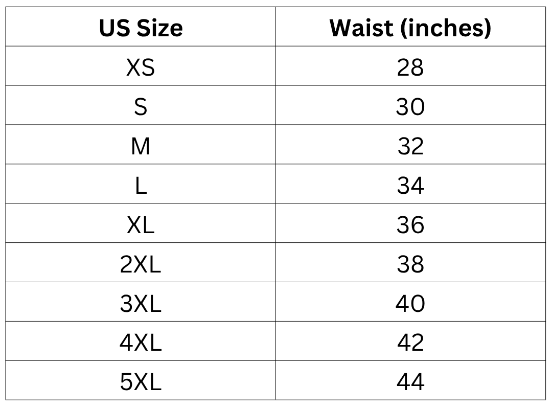 Size Chart (Inches):