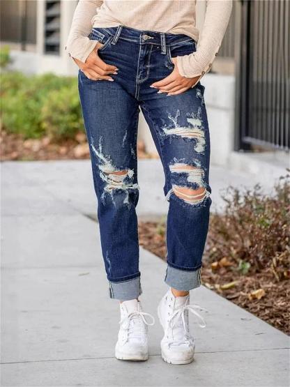 These jeans stay timeless with their ultra-comfortable fit, featuring a stylish textured design and a neat cuffed hem.