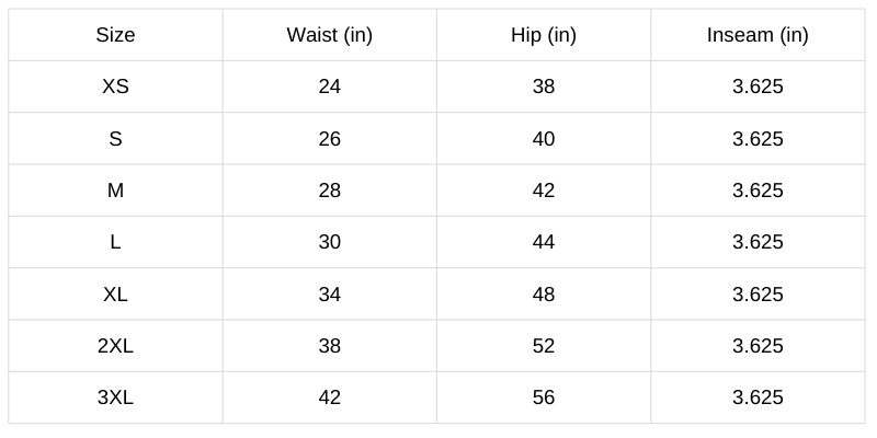 Size Chart (Inches):