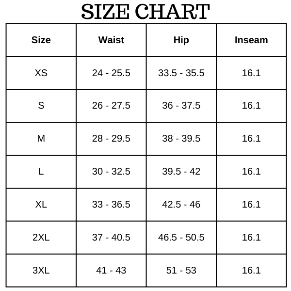 Size Chart (inches):